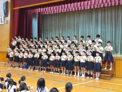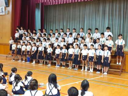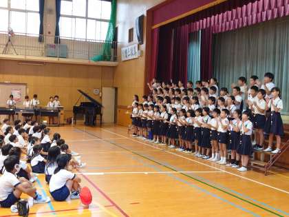 今日の児童集会は音楽集会で、2年生と4年生が発表しました。
