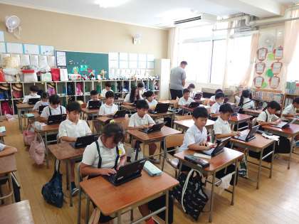 【3組】算数科で四角形や三角形を学んだまとめで、形を敷き詰める学習をしました。