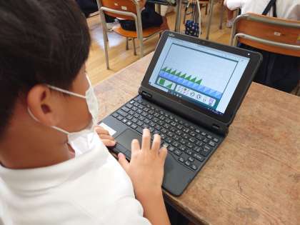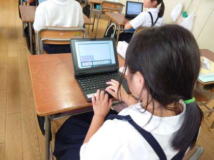 タブレット端末のソフトを使って、同じ形をすき間なく敷き詰めていきます。