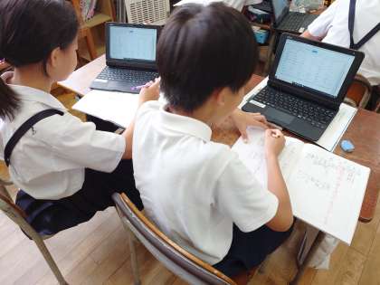 【1組】国語科の時間に教材文を学習したあとは、実際に自分たちで暮らしの中の和と洋について調べます。