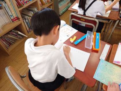 問題を読んで、たしざんを使うのか、ひきざんを使うのかを考えながら、ていねいに式を作っていました。