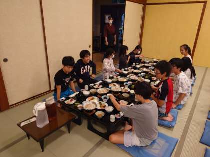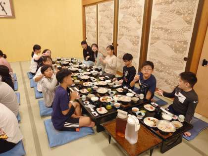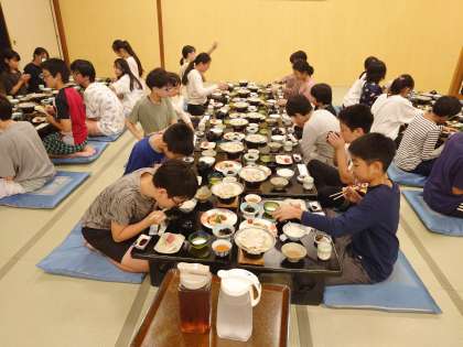 去年の修学旅行では、みんな前を向いて静かに食べていましたが、今年は、みんなと楽しく会食する事ができました。