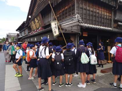 予定より少し早く伊勢神宮を出発したので、現在の所学校到着到着は16時半頃の予定です。