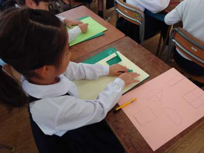 切り開くとどんな形ができるのかを想像しながら、切る線と折る線をはっきり分けて、切りました。
