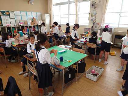 【1組】おもちゃけんきゅうじょで作ったおもちゃを、どのように遊ぶのかルールを決めたり、案内を作ったりして準備をしました。