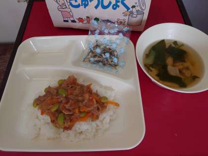 ピリ辛丼は、ピリ辛と言いつつもそこは給食メニューなので、誰もが食べられる辛さです。