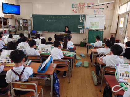【3組】鍵盤ハーモニカで、「どれみのあいさつ」という曲を演奏しました。