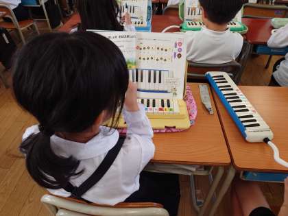鍵盤のドレミの音をしっかり覚えて、上手に吹いていました。