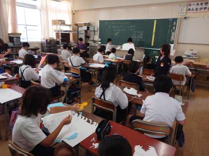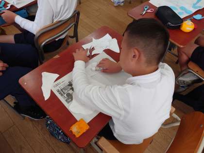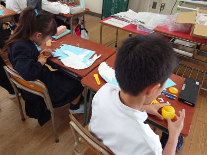 みんな、うろこや目玉などを工夫して、面白い魚を作っていました。