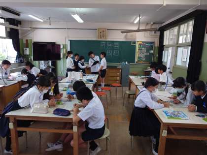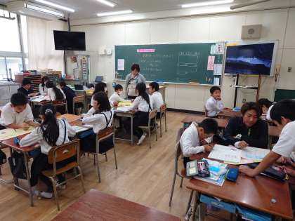 グループごとに選んだテーマをどのように伝えればよいか、みんな真剣に話し合っていました。
