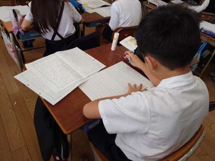 【2組】工夫して考えたお話を、原稿用紙に書いて完成させました。