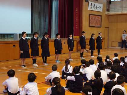 今日の児童集会は、後期委員会の委員長の紹介とあいさつをしました。