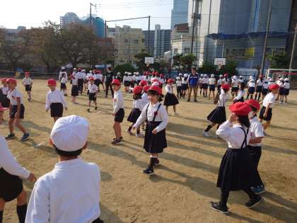 走ってはいけないので、みんな早歩きでにげておいかけます。