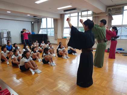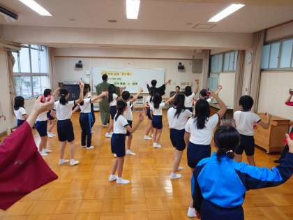 沖縄伝統組踊「子(しー)の会」の皆さんに、ダンスクラブの人が琉球舞踊「南嶽(なんだき)節」を教わりました。