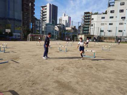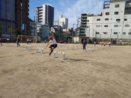 低いフォームで、リズミカルに素早くまたぎ越せるように、それぞれのめあてをもって取り組んでいきます。