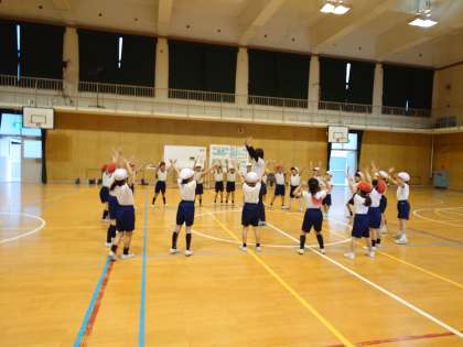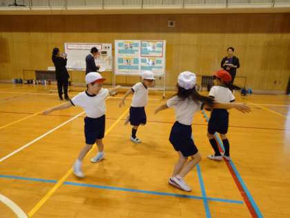 体つくりの運動あそびで、バランスをとる動きの運動をしました。