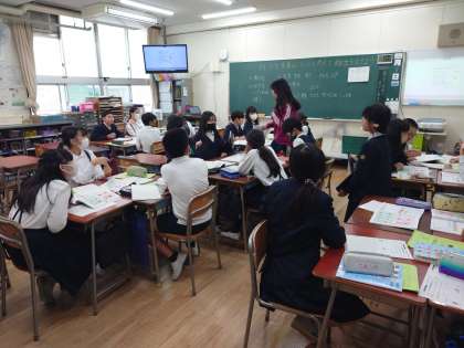 グループでアイデアを出し合いながら一生懸命考えていました。