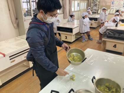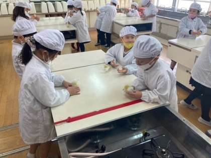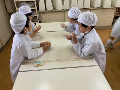 以前収穫した芋を茹でて、ラップの中で丸めたスイートポテト風のお菓子を作りました。砂糖等は入っていないのですが、子ども達は「あまーい」とお芋本来の甘さを味わっていました。