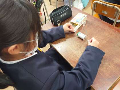 今日は、どうしたら豆電球に明かりをつけることができるかを試してみました。