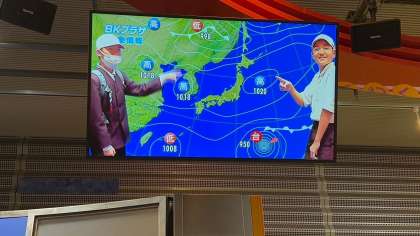 プラザでは、気象予報士やキャスターの体験で、クロマキーやプロンプターなどの撮影技術や仕組みを学びました。