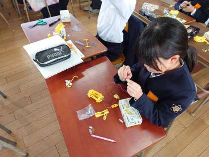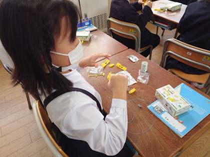 みんなあまり経験がないので、電線のエナメルをはがすのにも一苦労していましたが、あきらめずに取り組んでいました。