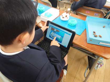 【1組】紙粘土を使って、どんぐりのケーキを作りました。