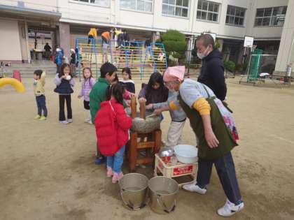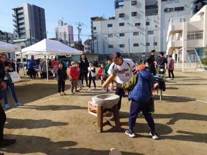 今日は、天王寺地域活動協議会と天王寺小学校PTAによるもちつき大会がありました。