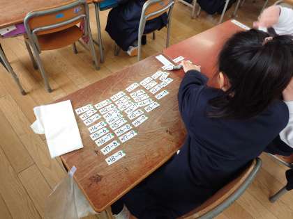 【2組】計算カードを使って、くり下がりのある引き算の学習をしました。