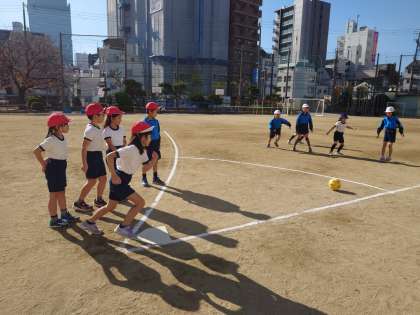 ならび終わった時をはっきりさせるために「OK」の合図を言ったり、キッカーが折り返してかえってくると5点のビッグボーナスになったりと、いろいろ工夫していました。