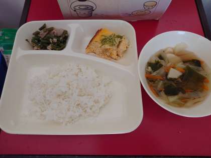五目汁も具材がたっぷりで、今日の献立には、だしや調味料をのぞいて全部で12種類の具材が使われています。