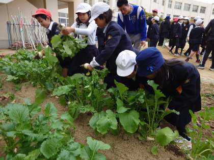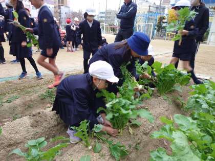 5年生と一緒に植えた伝統野菜の天王寺かぶらを抜きました。