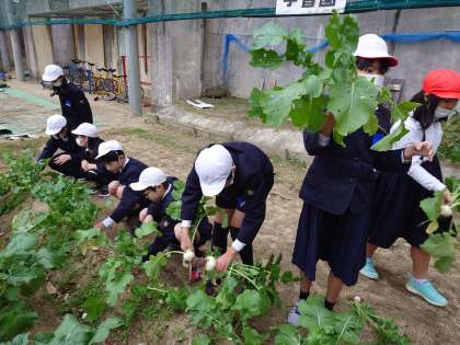 3年生と一緒に育てていたなにわの伝統野菜天王寺かぶらを抜きました。
