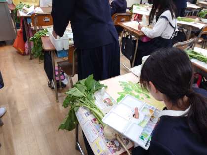 【1組】朝に抜いた天王寺かぶらの絵を描きました。