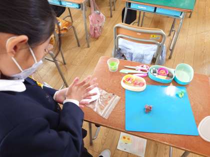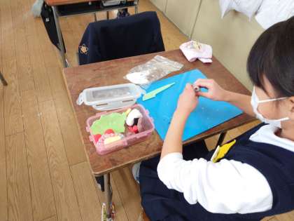 【3組】紙粘土で作ってきたお弁当も、そろそろ完成です。