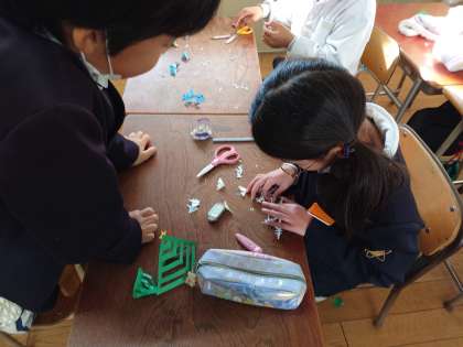 難しい作業も友だちと教え合いながら、仲良く作っていました。