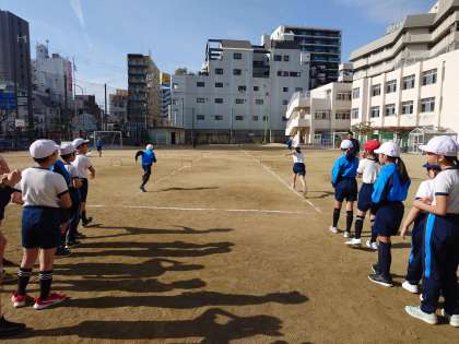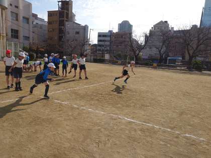【1組】体育科では、小型のミニハードルを使って陸上運動をしています。
