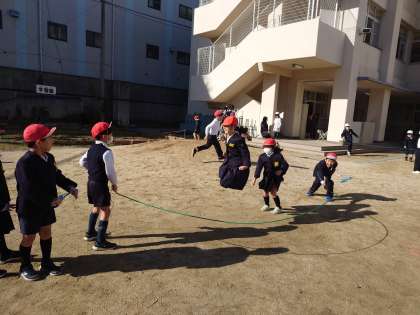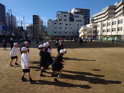 運動場では、クラスあそびなどで、みんなで楽しく遊んでいました。