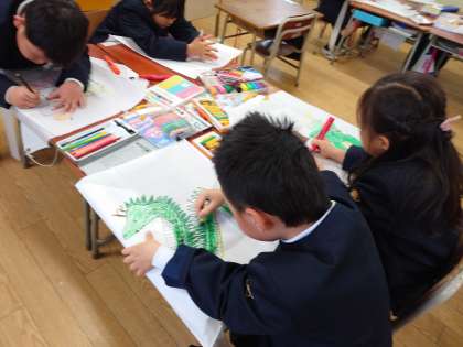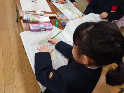 干支にちなんだ龍だけでなく、門松や鏡餅まで、いろんな絵を描いて、お正月らしい雰囲気を味わっていました。