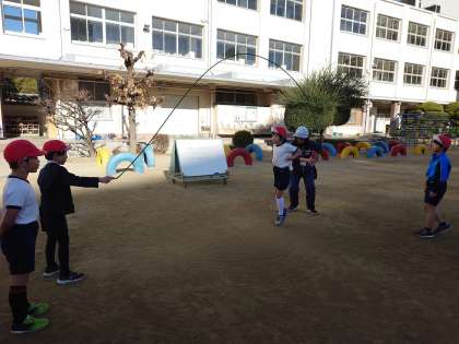 見事全員が成功したので、次の時間はグループで8の字跳びにチャレンジします。