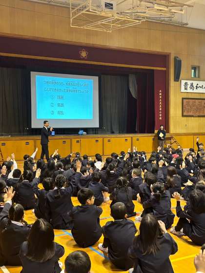 今週の始まりは児童朝会からです。