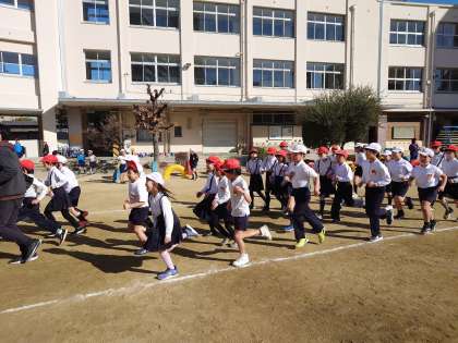 低学年では、スタートの合図とともに、何人もの子が猛ダッシュで走り始めます。