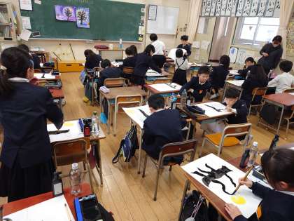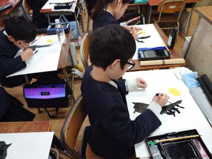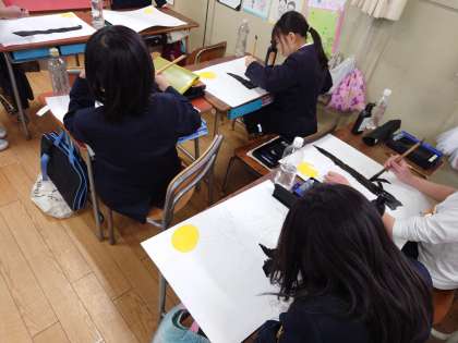 いつも使っている絵筆と違うので、みんな集中して描いていました。