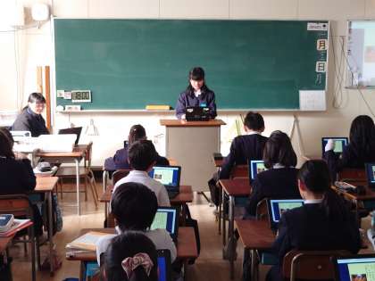 今日は、ロイロノートで作った発表ノートを使って、発表会をしました。