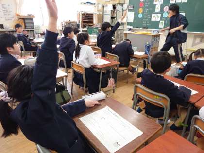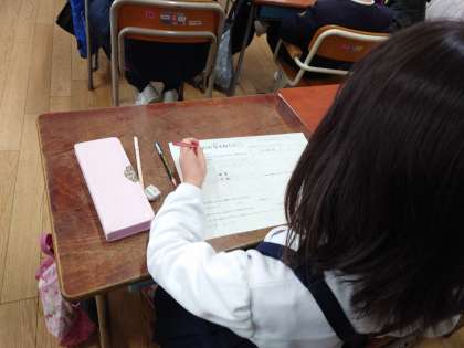 【1組】栄養指導で、旬の食べ物について学習しました。