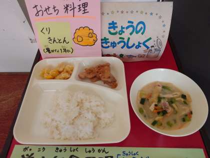 栗きんとんは「栗金団」と書き、きれいな黄色から黄金に見立てた富や金運を得る縁起物だそうです。