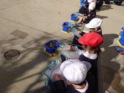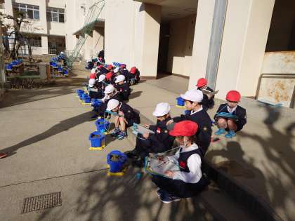 【2組】チューリップの球根の芽が出たので、観察しました。
