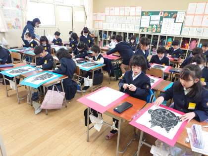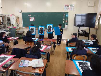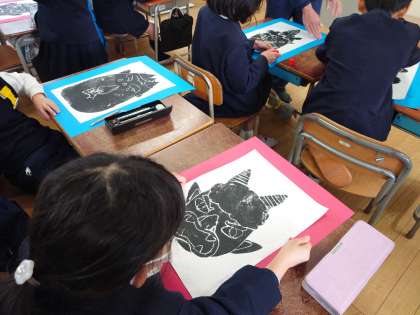 できあがった版画の鬼に自分で名前をつけて、みんなに紹介しました。