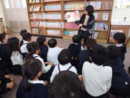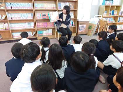 【3組】図書の時間に司書の先生が読み聞かせをしてくださいました。