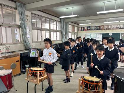 【3組】3年生は日本の各地域に伝わるお囃子について勉強しています。