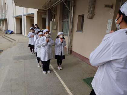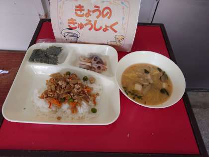 今日は、午前中にかけ足大会でしっかり体を動かしたので、みんなきっとお腹がすいているでしょうね。